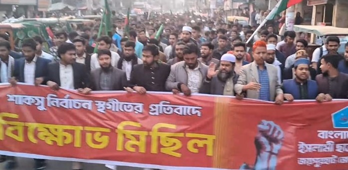 শাকসু নির্বাচন স্থগিতের প্রতিবাদে জয়পুরহাটে ছাত্রশিবিরের বিক্ষোভ মিছিল ও সমাবেশ