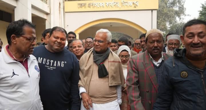 দিনাজপুর–৬ (নবাবগঞ্জ, বিরামপুর, হাকিমপুর ও ঘোড়াঘাট) আসনে ধানের শীষ প্রতীকে মনোনয়ন পাওয়ার পর জেলা প্রশাসকের কার্যালয় থেকে ফেরার পথে অধ্যাপক